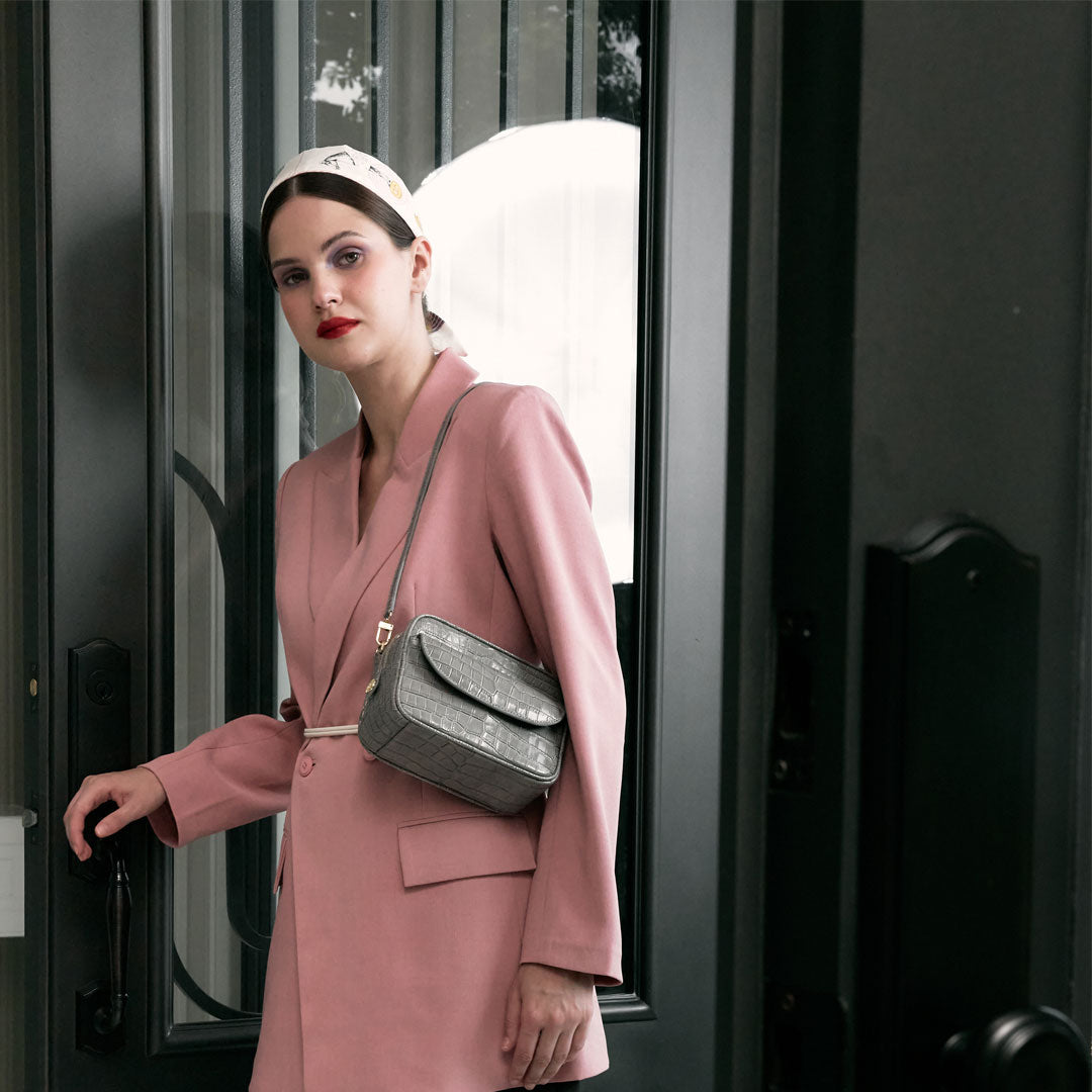 Designed for the contemporary urban adventurer, this meticulously crafted over the shoulder bag is a harmonious fusion of sophisticated design and unparalleled functionality. Comes with double-zipped top and front flap pocket with magnetic clasp to keep all your bibs organized. Carry it without its accompanying strap as a clutch
